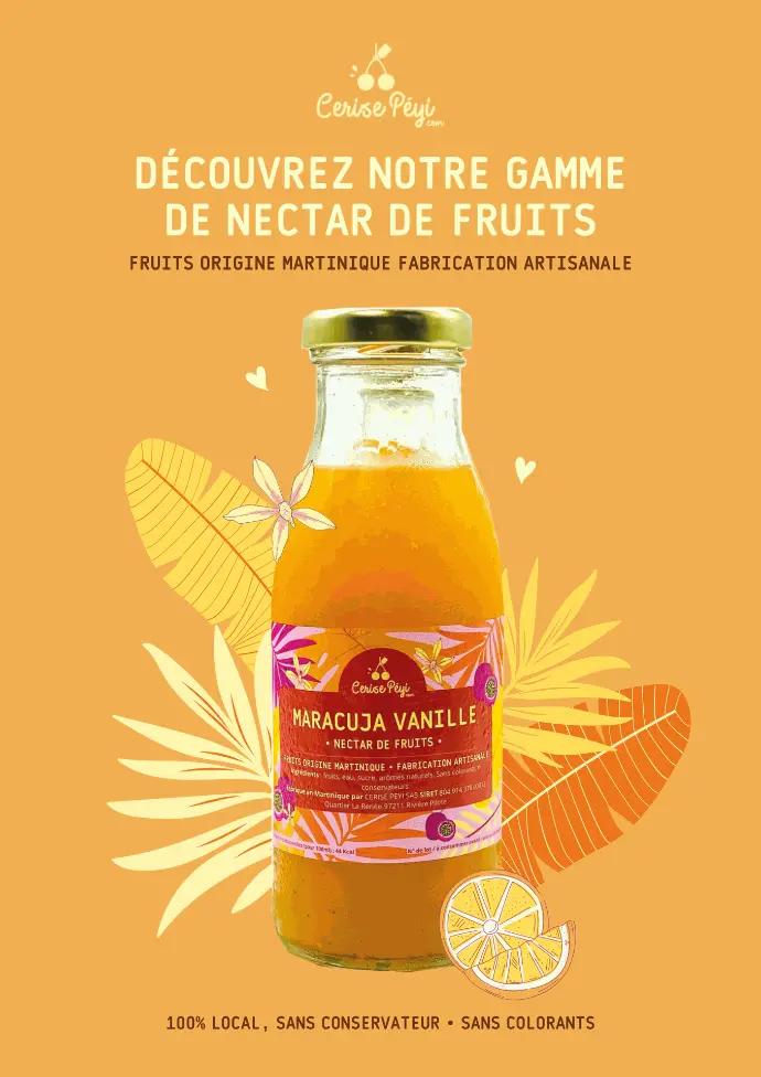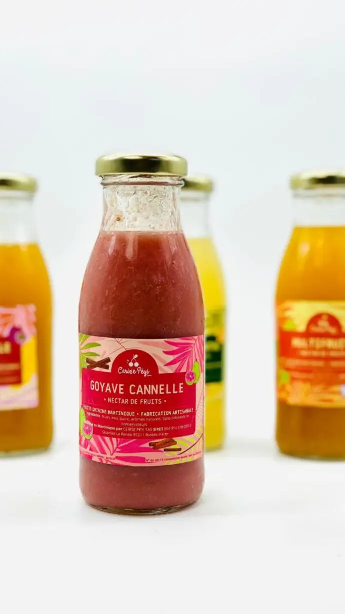 Our nectars are pure concentrated fruits - guava, lime, passion fruit and mango. Give them a try. No preservatives, no colorings. Fruits from Sun and Caribbean.